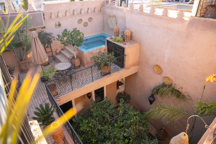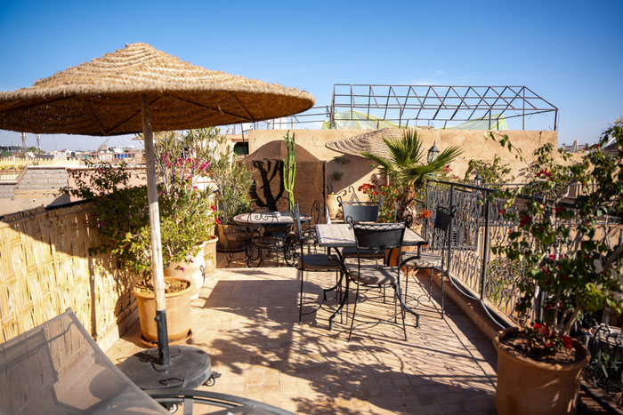 Belles terrasses fleuries dans ce charmant riad authentique à Marrakech